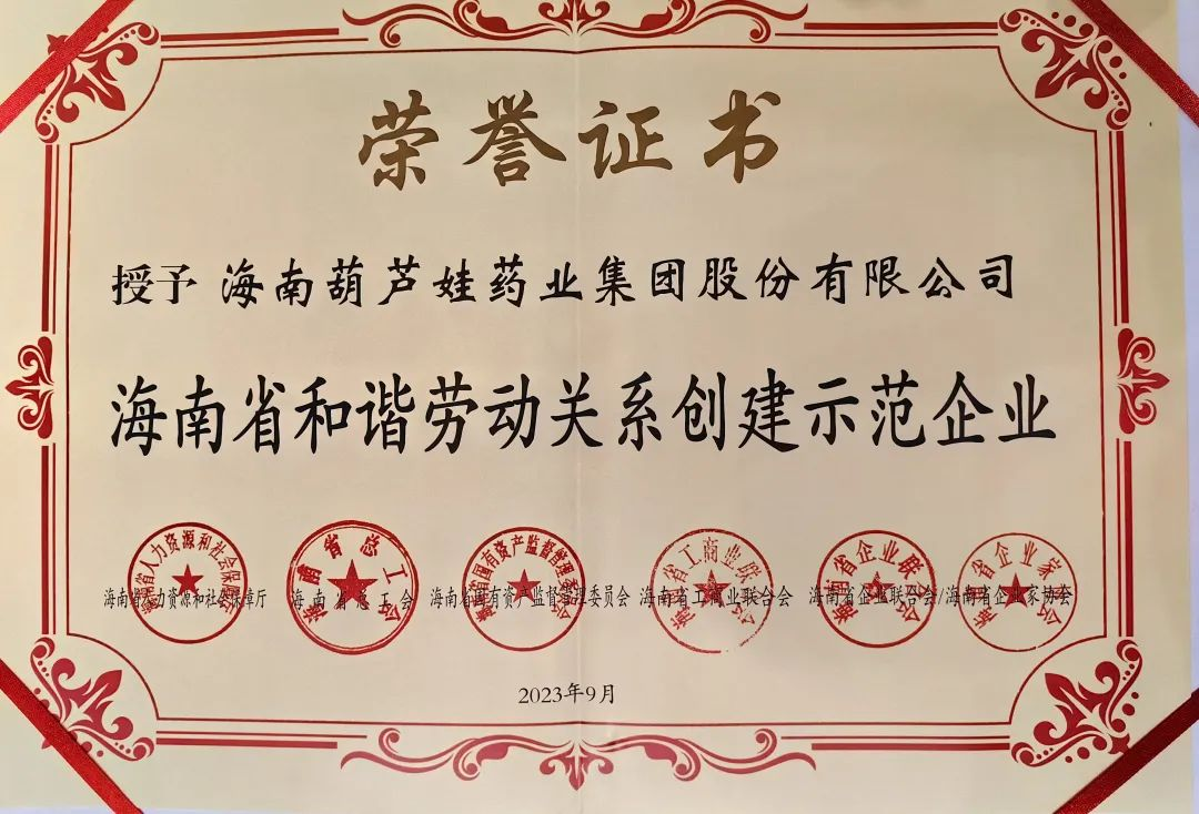 918博天堂药业集团获评“海南省和谐劳动关系创建示范企业”